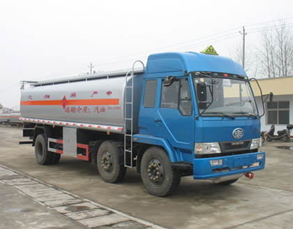 | 解放小三軸加油車罐體有效容積:20立方米,罐體外形尺寸(長×寬×高)(mm)7100×2400×1620,運(yùn)輸介質(zhì):汽油,密度:700千克/立方米,駕駛室準(zhǔn)乘人數(shù)2人對應(yīng)的載質(zhì)量為13500kg。 |