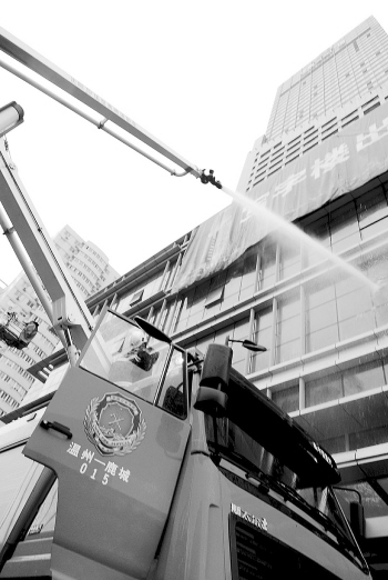 據(jù)了解,華盟商務廣場高168米,總共45層,是我市目前已建成使用的第一高樓。在昨天的演習中,消防人員把著火層設定在21層。下午3點45分,只見大廈21層的幾個窗口冒出滾滾濃煙,消防部門接警后,先后出動下呂浦中隊、特勤一中隊、牛山中隊、特勤二中隊等四個消防中隊,80多人和15輛消防車。為了實現(xiàn)高空滅火和救援,35米的登高平臺車、52米高的云梯車及高噴車先后登場。記者了解到,這些參演的消防車輛價值不菲,52米的云梯車價值600多萬元,德國進口的35米的登高平臺車價值300多萬元,美國進口的大力搶險救援車價值500多萬元。